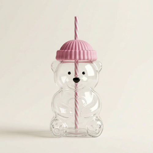 Bear Glass Cup with Lid & Straw (Pink) - 591 ml